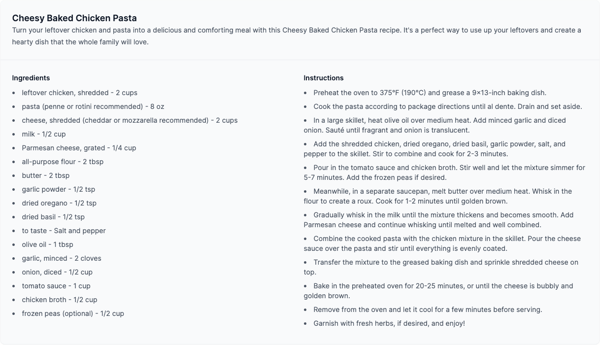 Ever opened your fridge and wondered what you could possibly whip up with what's inside? With our AI-driven recipe generator, just input the ingredients you have on hand, and we'll craft creative and delicious recipes tailored for you. Turn those random ingredients into culinary masterpieces and reduce food waste effortlessly.