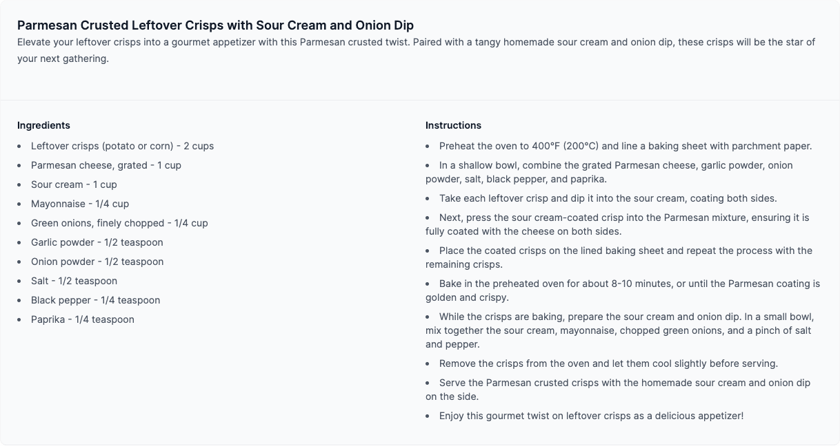 Dig into the back of your fridge and let nothing go to waste. With the magic of Recipe Reactor, even those forgotten veggies or last night's roast can be reborn into a delightful dish.